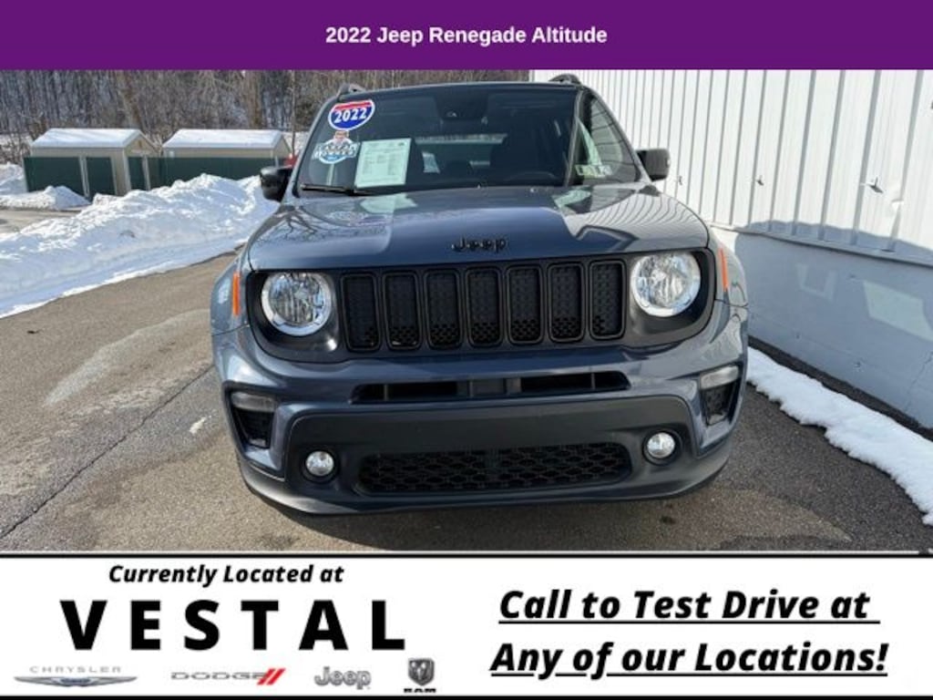 With its striking Slate Blue Pearlcoat exterior and impressive list of amenities, the 2022 Jeep Renegade Altitude is the perfect blend of style, capability, and convenience. Experience the difference for yourself and schedule a test drive today. We're confident you'll be impressed by this exceptional SUV.
