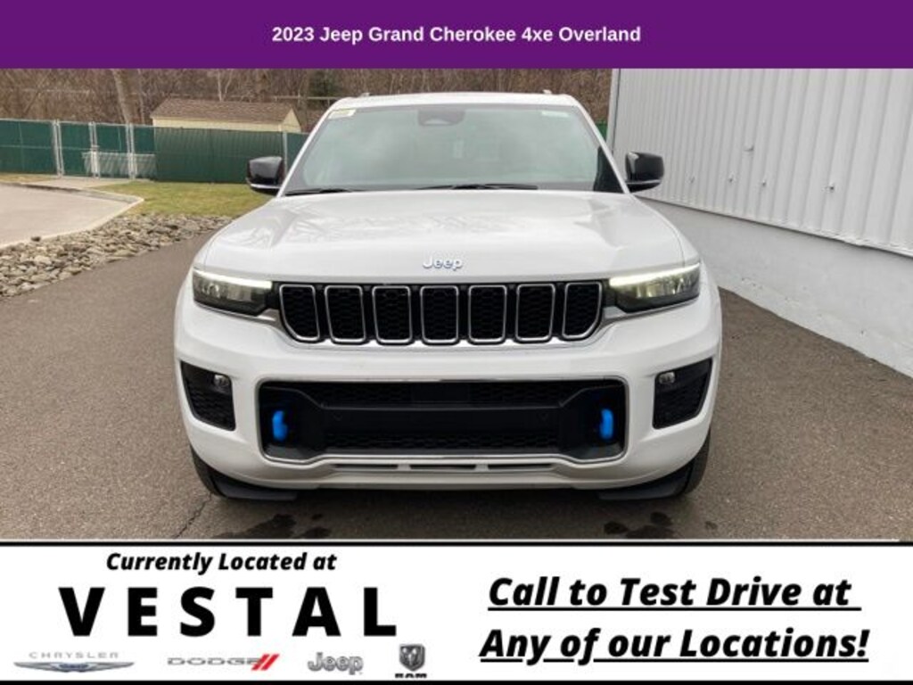 2.0L I4 DOHC, 4WD, 19 Speakers, 2nd-Row Manual Window Shades, 3.70 Rear Axle Ratio, 4-Wheel Disc Brakes, ABS brakes, Adaptive suspension, Air Conditioning, Alloy wheels, AM/FM radio: SiriusXM with 360L, Anti-whiplash front head restraints, ATC w/4 Zone Temp Control, Audio memory, Auto High-beam Headlights, Auto-dimming door mirrors, Auto-dimming Rear-View mirror, Auto-leveling suspension, Automatic temperature control, Bluetooth, Brake assist, Bumpers: body-color, Compass, Delay-off headlights, Driver door bin, Driver Power Seat Back Massage, Driver vanity mirror, Dual front impact airbags, Dual front side impact airbags, Electronic Stability Control, Four wheel independent suspension, Front anti-roll bar, Front Bucket Seats, Front Center Armrest w/Storage, Front dual zone A/C, Front fog lights, Front License Plate Bracket, Front Passenger Power Seat Back Massage, Front reading lights, Fully automatic headlights, Garage door transmitter, Heated door mirrors, Heated front seats, Heated rear seats, Heated steering wheel, Heavy Duty Suspension, Illuminated entry, Knee airbag, Low tire pressure warning, Luxury Tech Group IV, Memory seat, Nappa Leather Seats, Nappa Leather Seats (TL), Navigation System, Occupant sensing airbag, Outside temperature display, Overhead airbag, Overhead console, Panic alarm, Passenger door bin, Passenger Seat Memory, Passenger vanity mirror, Power Adjust 12-Way Driver Seat, Power Adjust 12-Way Front Passenger Seat, Power door mirrors, Power driver seat, Power Liftgate, Power moonroof, Power passenger seat, Power steering, Power windows, Quick Order Package 27P, Radio data system, Radio: Uconnect 5 Nav w/10.1" Display, Rain sensing wipers, Rear anti-roll bar, Rear reading lights, Rear seat center armrest, Rear window defroster, Rear window wiper, Rearview Autodim Digital Display Mirror, Remote keyless entry, Security system, Speed control, Speed-Sensitive Wipers, Split folding rear seat, Spoiler, Steering wheel memory, Steering wheel mounted audio controls, Tachometer, Telescoping steering wheel, Tilt steering wheel, Traction control, Trip computer, Turn signal indicator mirrors, Variably intermittent wipers, Ventilated front seats, Wheels: 20" x 8.5" Machined Face Aluminum, Wireless Charging Pad, 2.0L I4 DOHC, 4WD. 2023 Jeep Grand Cherokee 4D Sport Utility Overland 4xe Bright White Clearcoat 4WD 8-Speed Automatic 2.0L I4 DOHC