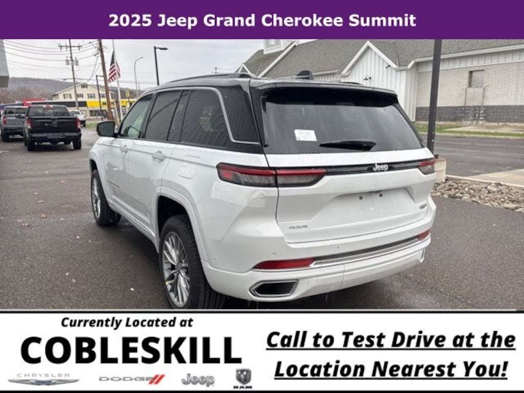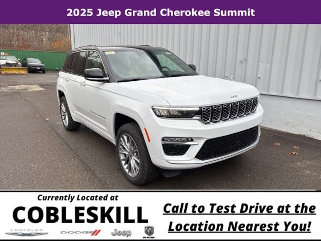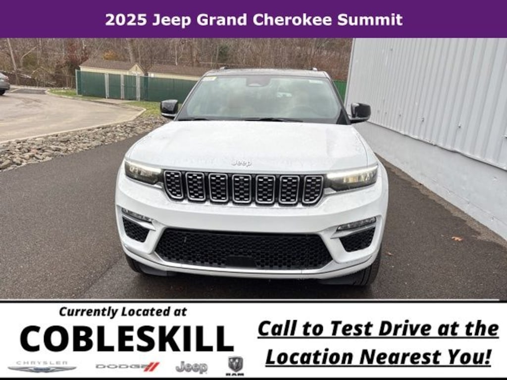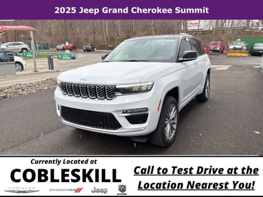 Save Time at the Dealership by Customizing your Deal Online!, 4WD, 10 Speakers, 4-Wheel Disc Brakes, ABS brakes, Active Noise Control System, Adaptive suspension, Air Conditioning, Alloy wheels, AM/FM radio: SiriusXM with 360L, Anti-whiplash front head restraints, Audio memory, Auto High-beam Headlights, Auto-dimming door mirrors, Auto-dimming Rear-View mirror, Auto-leveling suspension, Automatic temperature control, Auxiliary Battery, Brake assist, Bumpers: body-color, Compass, Delay-off headlights, Driver door bin, Driver vanity mirror, Dual front impact airbags, Dual front side impact airbags, Electronic Stability Control, Emergency communication system, Four wheel independent suspension, Front anti-roll bar, Front Bucket Seats, Front Center Armrest w/Storage, Front dual zone A/C, Front fog lights, Front License Plate Bracket, Front reading lights, Fully automatic headlights, Garage door transmitter, Genuine wood dashboard insert, Genuine wood door panel insert, Heated door mirrors, Heated front seats, Heated rear seats, Heated steering wheel, Illuminated entry, Knee airbag, Leather steering wheel, Low tire pressure warning, Memory seat, Model Year Tracking, Nappa Leather Seats, Navigation System, Normal Duty Suspension, Occupant sensing airbag, Outside temperature display, Overhead airbag, Overhead console, Panic alarm, Passenger door bin, Passenger vanity mirror, Power door mirrors, Power driver seat, Power Liftgate, Power moonroof, Power passenger seat, Power steering, Power windows, Quick Order Package 23S, Radio data system, Radio: Uconnect 5 Nav with 10.1" Display, Rain sensing wipers, Rear air conditioning, Rear anti-roll bar, Rear dual zone A/C, Rear reading lights, Rear seat center armrest, Rear window defroster, Rear window wiper, Remote keyless entry, Security system, Speed control, Speed-Sensitive Wipers, Split folding rear seat, Spoiler, Steering wheel memory, Steering wheel mounted audio controls, Tachometer, Telescoping steering wheel, Tilt steering wheel, Traction control, Trip computer, Turn signal indicator mirrors, Variably intermittent wipers, Ventilated front seats, Voltmeter, Wheels: 20" x 8.5" Fully Painted Aluminum Silver, 4WD. 2025 Jeep Grand Cherokee 4D Sport Utility Summit 4WD 8-Speed Automatic 3.6L V6 24V VVT Bright White Clearcoat