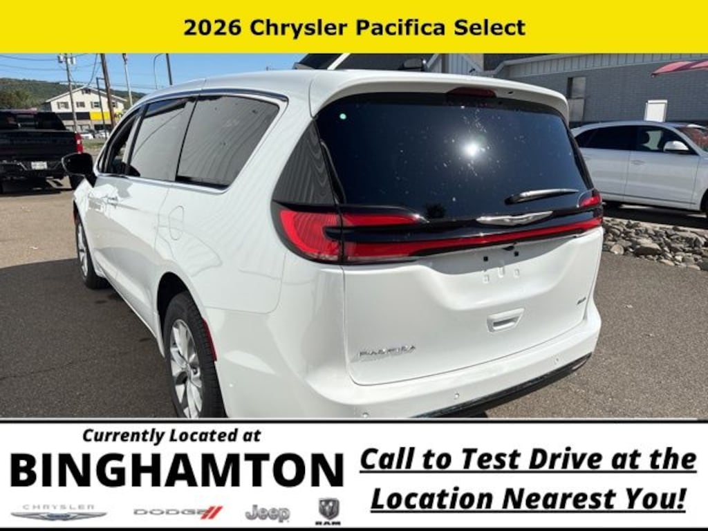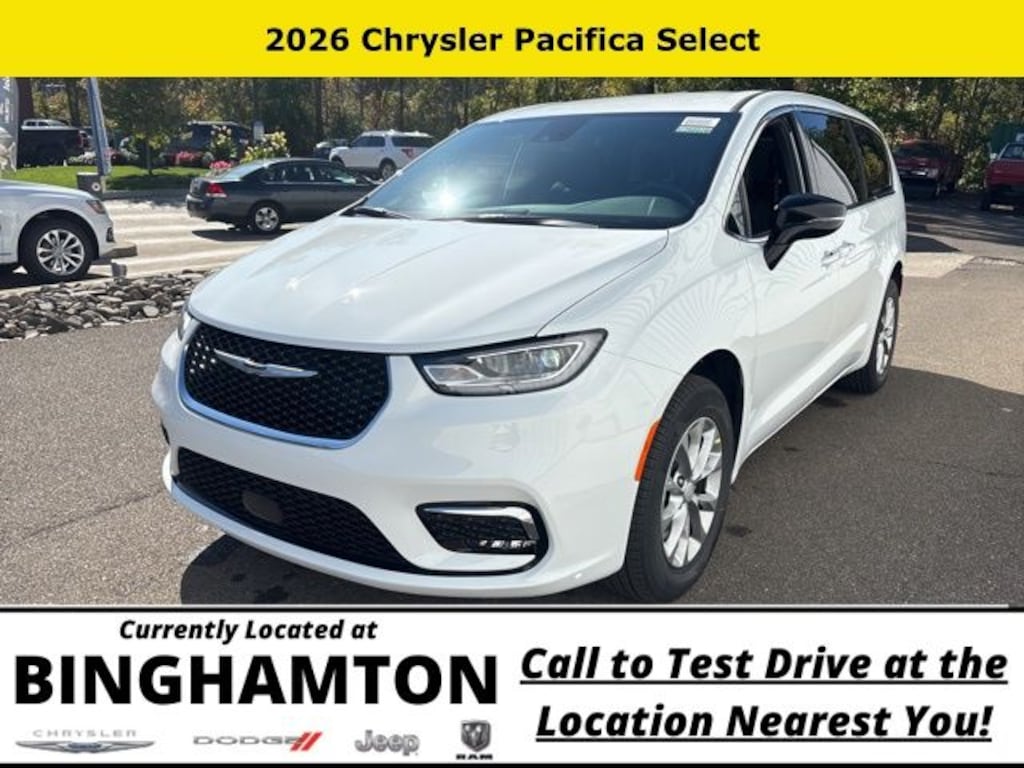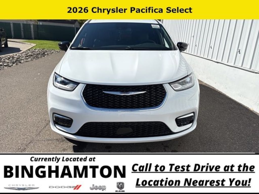 Bright White Clearcoat 2026 Chrysler Pacifica Select AWD 9-Speed 948TE Automatic 3.6L V6 24V VVT Save Time at the Dealership by Customizing your Deal Online!, 10.1" Touchscreen Display, 18" x 7.5" Painted Aluminum Wheels, 3.73 Axle Ratio, 3rd row seats: split-bench, 4-Wheel Disc Brakes, 4G LTE Wi-Fi Hot Spot, 6 Speakers, ABS brakes, Air Conditioning, Alloy wheels, AM/FM radio: SiriusXM, Apple CarPlay, Apple CarPlay/Android Auto, Auto-dimming Rear-View mirror, Automatic temperature control, AWD Suspension, Black Seats, Brake assist, Bumpers: body-color, Caprice Leatherette Bucket Seats, Compass, Connectivity - US/Canada, Delay-off headlights, Disassociated Touchscreen Display, Driver door bin, Driver vanity mirror, Driver's Seat Mounted Armrest, Dual front impact airbags, Dual front side impact airbags, Electronic Stability Control, Emergency communication system: Chrysler Connect, For Details, Visit DriveUconnect.com, Four wheel independent suspension, Front anti-roll bar, Front Bucket Seats, Front dual zone A/C, Front fog lights, Front reading lights, Fully automatic headlights, Garage door transmitter, Google Android Auto, GPS Antenna Input, Heated door mirrors, Heated front seats, Heated steering wheel, Illuminated entry, Integrated Active Noise Cancellation, Integrated Center Stack Radio, Knee airbag, Low tire pressure warning, Memory seat, Occupant sensing airbag, Outside temperature display, Overhead airbag, Overhead console, Panic alarm, ParkView Rear Back-Up Camera, Passenger door bin, Passenger seat mounted armrest, Passenger vanity mirror, Power door mirrors, Power driver seat, Power Liftgate, Power steering, Power windows, Quick Order Package 27L, Radio data system, Radio: Uconnect 5 w/10.1" Display, Rain sensing wipers, Rear air conditioning, Rear reading lights, Rear window defroster, Rear window wiper, Reclining 3rd row seat, Remote keyless entry, Security system, Speed control, Split folding rear seat, Spoiler, Steering wheel mounted audio controls, Tachometer, Telescoping steering wheel, Tilt steering wheel, Traction control, Trip computer, Turn signal indicator mirrors, USB Host Flip, Variably intermittent wipers, Voltmeter.