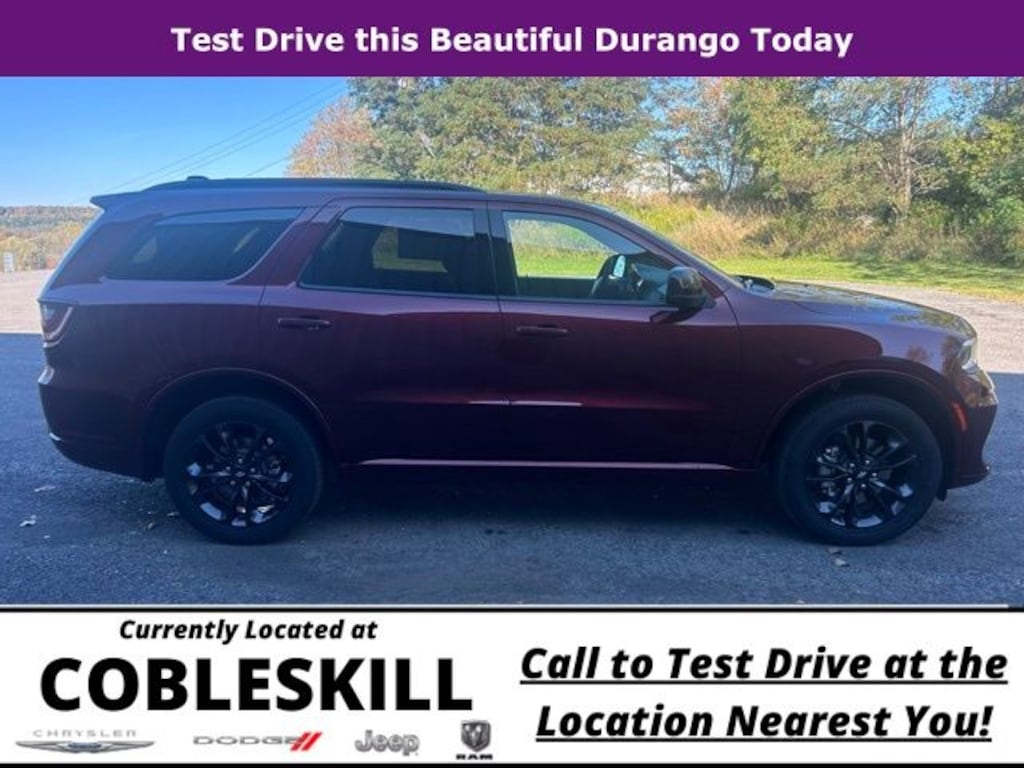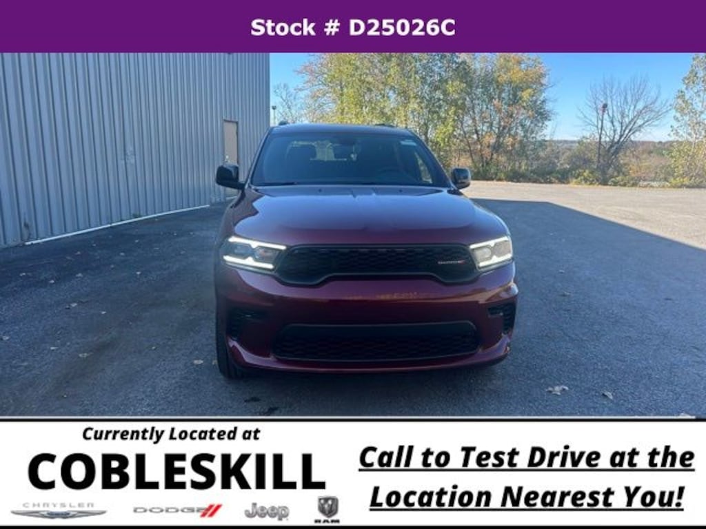 Octane Red Pearlcoat 2026 Dodge Durango GT AWD 8-Speed Automatic 3.6L V6 24V VVT Save Time at the Dealership by Customizing your Deal Online!, AWD, 3.45 Rear Axle Ratio, 3rd row seats: split-bench, 4-Wheel Disc Brakes, 6 Speakers, 7 & 4 Pin Wiring Harness, ABS brakes, Air Conditioning, Alloy wheels, AM/FM radio: SiriusXM w/360L, Apple CarPlay/Android Auto, Auto-dimming Rear-View mirror, Automatic temperature control, Black Roof Rails, Blacktop Package, Blind Spot w/Trailer Detection, Brake assist, Bumpers: body-color, Class IV Receiver Hitch, Cloth Bucket Seats w/Shift Insert, Compass, Delay-off headlights, Driver door bin, Driver vanity mirror, Dual front impact airbags, Dual front side impact airbags, Electronic Stability Control, Emergency communication system: Dodge Connect, Exterior Mirrors w/Heating Element, Four wheel independent suspension, Front anti-roll bar, Front Bucket Seats, Front Center Armrest w/Storage, Front dual zone A/C, Front License Plate Bracket, Front reading lights, Fully automatic headlights, Garage door transmitter, Gloss Black Badges, Gloss Black Exterior Mirrors, GT Gloss Black Badging, Heated door mirrors, Heated front seats, Heated steering wheel, Heavy-Duty Engine Cooling, Illuminated entry, Integrated Roof Rail Crossbars, Knee airbag, Leather steering wheel, Low tire pressure warning, Navigation System, Occupant sensing airbag, Outside temperature display, Overhead airbag, Overhead console, Panic alarm, ParkView Rear Back-Up Camera, Passenger door bin, Passenger vanity mirror, Power door mirrors, Power driver seat, Power Liftgate, Power steering, Power windows, Quick Order Package 2BD GT, Radio data system, Radio: Uconnect 5 Nav w/10.1" Display, Rear air conditioning, Rear anti-roll bar, Rear Load Leveling Suspension, Rear reading lights, Rear seat center armrest, Rear window defroster, Rear window wiper, Red Accent Stitching, Remote keyless entry, Satin Black Dodge Tail Lamp Badge, Speed control, Speed-sensing steering, Speed-Sensitive Wipers, Split folding rear seat, Spoiler, Sport steering wheel, Steering wheel mounted audio controls, Tachometer, Telescoping steering wheel, Tilt steering wheel, Traction control, Trailer Brake Control, Trailer Tow Group IV, Trip computer, Variably intermittent wipers, Voltmeter, Wheels: 20" x 8" Black Noise Aluminum, Wheels: 20" x 8" Fine Silver, AWD.