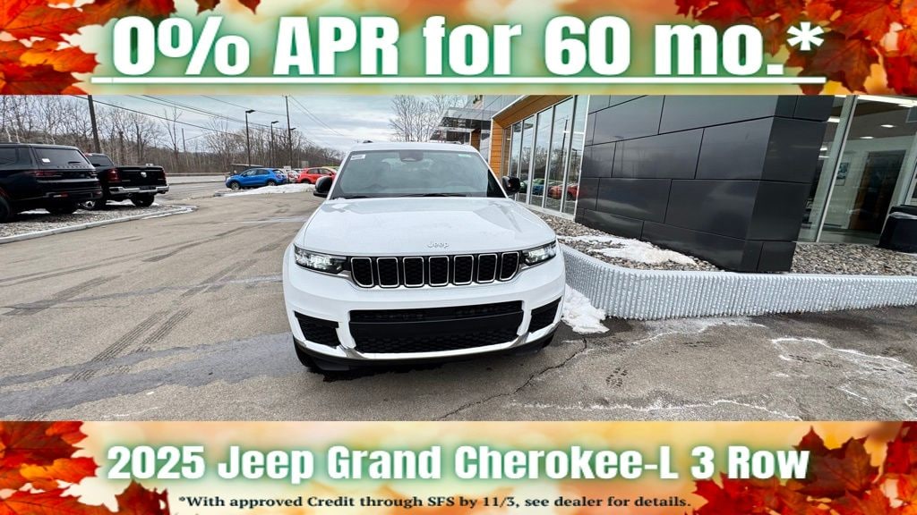 Bright White Clearcoat 2025 Jeep Grand Cherokee L 4WD 8-Speed Automatic 3.6L V6 24V VVT 3.45 Rear Axle Ratio, 3rd row seats: split-bench, 4-Wheel Disc Brakes, 6 Speakers, ABS brakes, Air Conditioning, Alloy wheels, AM/FM radio: SiriusXM, Anti-whiplash front head restraints, Automatic temperature control, Bluetooth, Brake assist, Bumpers: body-color, Cloth Seats, Compass, Delay-off headlights, Driver door bin, Driver vanity mirror, Dual front impact airbags, Dual front side impact airbags, Electronic Stability Control, Emergency communication system, Four wheel independent suspension, Front anti-roll bar, Front Bucket Seats, Front Center Armrest w/Storage, Front dual zone A/C, Front License Plate Bracket, Front reading lights, Fully automatic headlights, Heated door mirrors, Illuminated entry, Knee airbag, Low tire pressure warning, Manual Fold Seatbacks, Model Year Tracking, Normal Duty Suspension, Occupant sensing airbag, Outside temperature display, Overhead airbag, Overhead console, Panic alarm, ParkView Rear Back-Up Camera, Passenger door bin, Passenger vanity mirror, Power door mirrors, Power driver seat, Power steering, Power windows, Radio data system, Radio: Uconnect 5 w/8.4" Display, Rear air conditioning, Rear anti-roll bar, Rear reading lights, Rear window defroster, Rear window wiper, Reclining 3rd row seat, Remote keyless entry, Security system, Speed control, Speed-Sensitive Wipers, Split folding rear seat, Spoiler, Steering wheel mounted audio controls, Tachometer, Telescoping steering wheel, Tilt steering wheel, Traction control, Trip computer, Variably intermittent wipers, Wheels: 18" x 8.0" Fully Painted Aluminum.