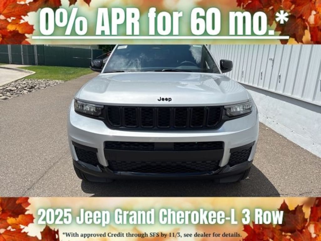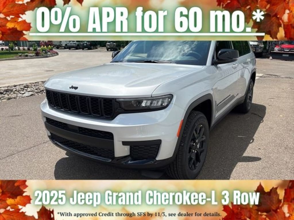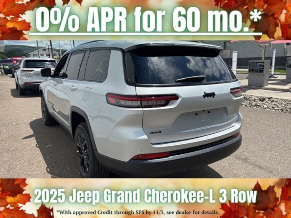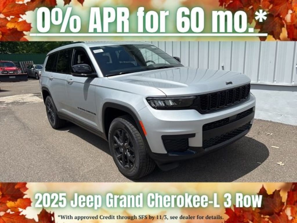 Silver Zynith 2025 Jeep Grand Cherokee L Altitude X 4WD 8-Speed Automatic 3.6L V6 24V VVT Save Time at the Dealership by Customizing your Deal Online!, 115V Auxiliary Power Outlet, 3.45 Rear Axle Ratio, 3rd Row Charge-Only USB Ports, 3rd row seats: split-bench, 4-Wheel Disc Brakes, 6 Speakers, ABS brakes, Air Conditioning, Alloy wheels, Altitude X, AM/FM radio: SiriusXM, Anti-whiplash front head restraints, Automatic temperature control, Black Headliner, Brake assist, Bumpers: body-color, Capri Leatherette/Suede Seats, Cloth Seats, Compass, Delay-off headlights, Delete Laredo Badge, Driver door bin, Driver vanity mirror, Dual front impact airbags, Dual front side impact airbags, Electronic Stability Control, Emergency communication system, Four wheel independent suspension, Front anti-roll bar, Front Bucket Seats, Front Center Armrest w/Storage, Front dual zone A/C, Front License Plate Bracket, Front reading lights, Fully automatic headlights, Gloss Black Exterior Accents, Heated door mirrors, Heated Front Seats, Heated Steering Wheel, Illuminated entry, Knee airbag, Low tire pressure warning, Manual Fold Seatbacks, Model Year Tracking, Normal Duty Suspension, Occupant sensing airbag, Outside temperature display, Overhead airbag, Overhead console, Panic alarm, ParkView Rear Back-Up Camera, Passenger door bin, Passenger vanity mirror, Power door mirrors, Power driver seat, Power Liftgate, Power steering, Power Sunroof, Power windows, Quick Order Package 23M Altitude X, Radio data system, Radio: Uconnect 5 w/8.4" Display, Rain Sensitive Windshield Wipers, Rear air conditioning, Rear anti-roll bar, Rear reading lights, Rear window defroster, Rear window wiper, Reclining 3rd row seat, Remote keyless entry, Remote Start System, Security system, Selectable Tire Fill Alert, Speed control, Speed-Sensitive Wipers, Split folding rear seat, Spoiler, Steering wheel mounted audio controls, Tachometer, Telescoping steering wheel, Tilt steering wheel, Traction control, Trip computer, Variably intermittent wipers, Voltmeter, Wheels: 18" x 8.0" Fully Painted Aluminum, Wheels: 18" x 8.0" Fully Painted Aluminum 1, Wireless Charging Pad.