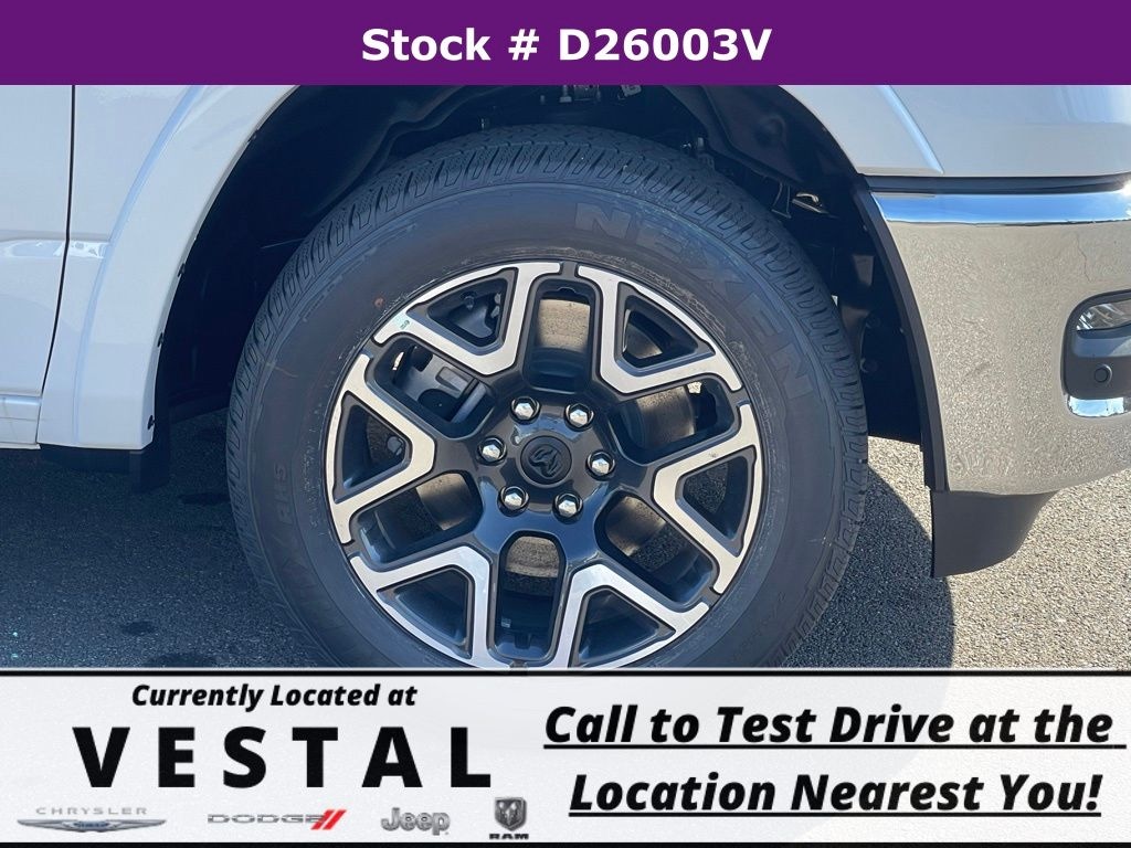 Ivory White Tri-Coat Pearlcoat 2026 Ram 1500 Laramie 4WD 8-Speed Automatic 3.0L I6 10 Speakers, 3.55 Rear Axle Ratio, 4-Wheel Disc Brakes, 4G LTE Wi-Fi Hot Spot, ABS brakes, Active Noise Control System, Air Conditioning, Alloy wheels, AM/FM radio: SiriusXM with 360L, Apple CarPlay, Apple CarPlay/Android Auto, Audio memory, Auto High-beam Headlights, Auto Power-Folding Mirrors, Auto-dimming door mirrors, Auto-Dimming Exterior Driver Mirror, Auto-dimming Rear-View mirror, Automatic temperature control, Bluetooth, Brake assist, Bumpers: chrome, Chrome Exterior Mirrors, Compass, Connected Travel & Traffic Services, Connectivity - US/Canada, Convex Wide-Angle Exterior Mirror Insert, Delay-off headlights, Disassociated Touchscreen Display, Driver door bin, Driver vanity mirror, Dual front impact airbags, Dual front side impact airbags, Electronic Stability Control, Exterior Mirrors Courtesy Lamps, Exterior Mirrors w/Heating Element, Exterior Mirrors w/Memory, Exterior Mirrors w/Supplemental Signals, Front anti-roll bar, Front Bucket Seats, Front Center Armrest w/Storage, Front dual zone A/C, Front fog lights, Front License Plate Bracket, Front reading lights, Front wheel independent suspension, Fully automatic headlights, Garage door transmitter, Global Telematics Box Module (TBM), Google Android Auto, GPS Antenna Input, GPS Navigation, HD Radio, Heated door mirrors, Heated front seats, Heated rear seats, Heated steering wheel, Illuminated entry, Integrated Center Stack Radio, Integrated Voice Command w/Bluetooth, Laramie Level 1 Equipment Group, Leather steering wheel, Leather Trimmed Bucket Seats, Low tire pressure warning, Manufacturer's Statement of Origin, Memory seat, MOPAR Front & Rear Rubber Floor Mats, Navigation System, Occupant sensing airbag, Off-Road Information Pages, Outside temperature display, Overhead airbag, Overhead console, Panic alarm, ParkView Rear Back-Up Camera, Passenger door bin, Passenger vanity mirror, Power door mirrors, Power driver seat, Power passenger seat, Power steering, Power windows, Quick Order Package 21H Laramie, Radio data system, Radio: Uconnect 5 Nav w/12.0" Display, Rain Sensitive Windshield Wipers, RAM Grille Badge - Chrome, Rear anti-roll bar, Rear reading lights, Rear seat center armrest, Rear step bumper, Remote keyless entry, Remote Tailgate Release, Secondary Active Grille Shutters, Security system, SiriusXM Radio Service, SiriusXM w/360L, Speed control, Split folding rear seat, Steering wheel mounted audio controls, Tachometer, Telescoping steering wheel, Tilt steering wheel, Traction control, Trip computer, Turn signal indicator mirrors, USB Host Flip, Variably intermittent wipers, Ventilated front seats, Wheels: 20" x 9" Premium Paint/Polish, Wireless Charging Pad.