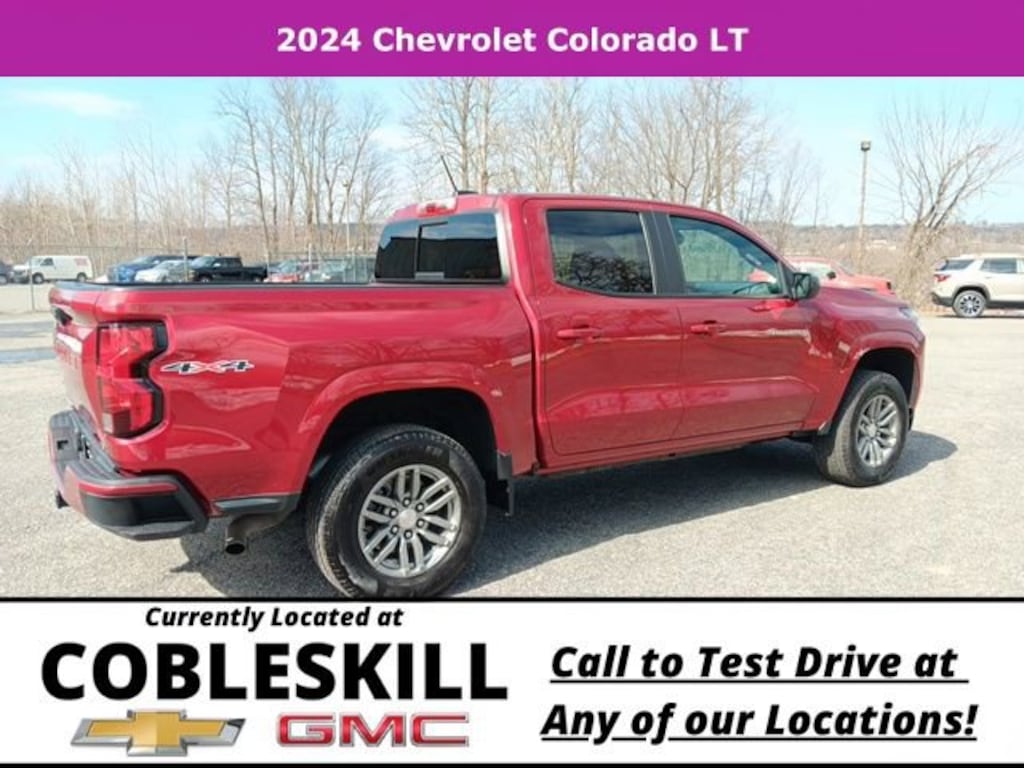 Save Time at the Dealership by Customizing your Deal Online!, 4WD, 1st & 2nd Row All-Weather Floor Liner (LPO), 220 Amp Generator, 3.42 Rear Axle Ratio, 4-Way Manual Passenger Seat Adjuster, 4-Wheel Disc Brakes, 6 Speakers, 6-Speaker Audio System Feature, 6-Way Manual Driver Seat Adjuster, 8-Way Power Driver Seat Adjuster, ABS brakes, Air Conditioning, Alloy wheels, AM/FM radio: SiriusXM, Appearance Engine Cover, Apple CarPlay/Android Auto, Auto High-beam Headlights, Automatic Emergency Braking, Brake assist, Bumpers: body-color, Chevy Safety Assist, Cloth Seat Trim, Compass, Delay-off headlights, Driver & Front Passenger Illuminated Visors, Driver door bin, Driver vanity mirror, Dual front impact airbags, Dual front side impact airbags, Dual-Zone Automatic Air Conditioning, Electronic Automatic Cruise Control, Electronic Stability Control, EZ-Lift & Lower Tailgate, Following Distance Indicator, Forward Collision Alert, Front anti-roll bar, Front Bucket Seats, Front Center Armrest, Front LED Fog Lamps, Front License Plate Kit, Front Passenger Seatback Map Pocket, Front Pedestrian & Bicyclist Braking, Front reading lights, Front wheel independent suspension, Heated Driver & Front Passenger Seats, Heated Power-Adjustable Outside Mirrors, Heavy-Duty Trailering Package, Illuminated entry, Inside Rear-View Auto-Dimming Mirror, Integrated Trailer Brake Controller, IntelliBeam Automatic High Beam On/Off, Lane Keep Assist w/Lane Departure Warning, Low tire pressure warning, LT Convenience Package, LT Convenience Package II, Manual Rear-Sliding Window, Navigation System, Occupant sensing airbag, Outside temperature display, Overhead airbag, Overhead console, Panic alarm, Passenger door bin, Passenger vanity mirror, Power door mirrors, Power Driver Lumbar Control Seat Adjuster, Power steering, Power windows, Preferred Equipment Group 4LT, Radio data system, Radio: 11.3 Diagonal Advanced Color LCD Display, Rear reading lights, Rear step bumper, Rear-Window Electric Defogger, Remote keyless entry, Remote Vehicle Starter System, Security system, SiriusXM Radio, Speed-sensing steering, Split folding rear seat, Steering Wheel Mounted Audio Controls, Steering wheel mounted audio controls, StowFlex Tailgate Storage Compartment, Tachometer, Tailgate Keyed Cylinder Lock, Tilt & Telescoping Steering Column, Tilt steering wheel, Traction control, Trip computer, Variably intermittent wipers, Wheels: 17 x 8 Argent Metallic Aluminum, Wireless Charging, Wireless Phone Projection, 4WD. 2024 Chevrolet Colorado LT 4WD 8-Speed Automatic 2.7L I4 Turbocharged DOHC 16V LEV3-ULEV50 237hp Radiant Red TintcoatRecent Arrival! Odometer is 9076 miles below market average!Awards:* Motor Trend Truck of the Year