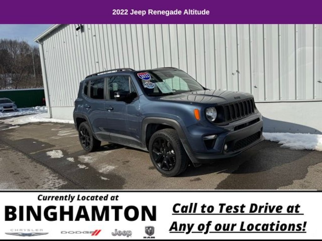 With its striking Slate Blue Pearlcoat exterior and impressive list of amenities, the 2022 Jeep Renegade Altitude is the perfect blend of style, capability, and convenience. Experience the difference for yourself and schedule a test drive today. We're confident you'll be impressed by this exceptional SUV.