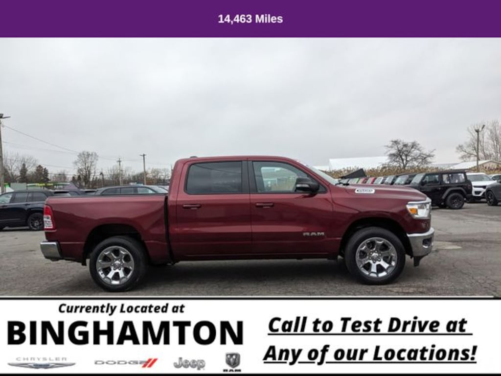 2022 Ram 1500 4D Crew Cab Big Horn/Lone Star 4WD 8-Speed Automatic HEMI 5.7L V8 Multi Displacement VVT Delmonico Red Pearlcoat 15/21 City/Highway MPG