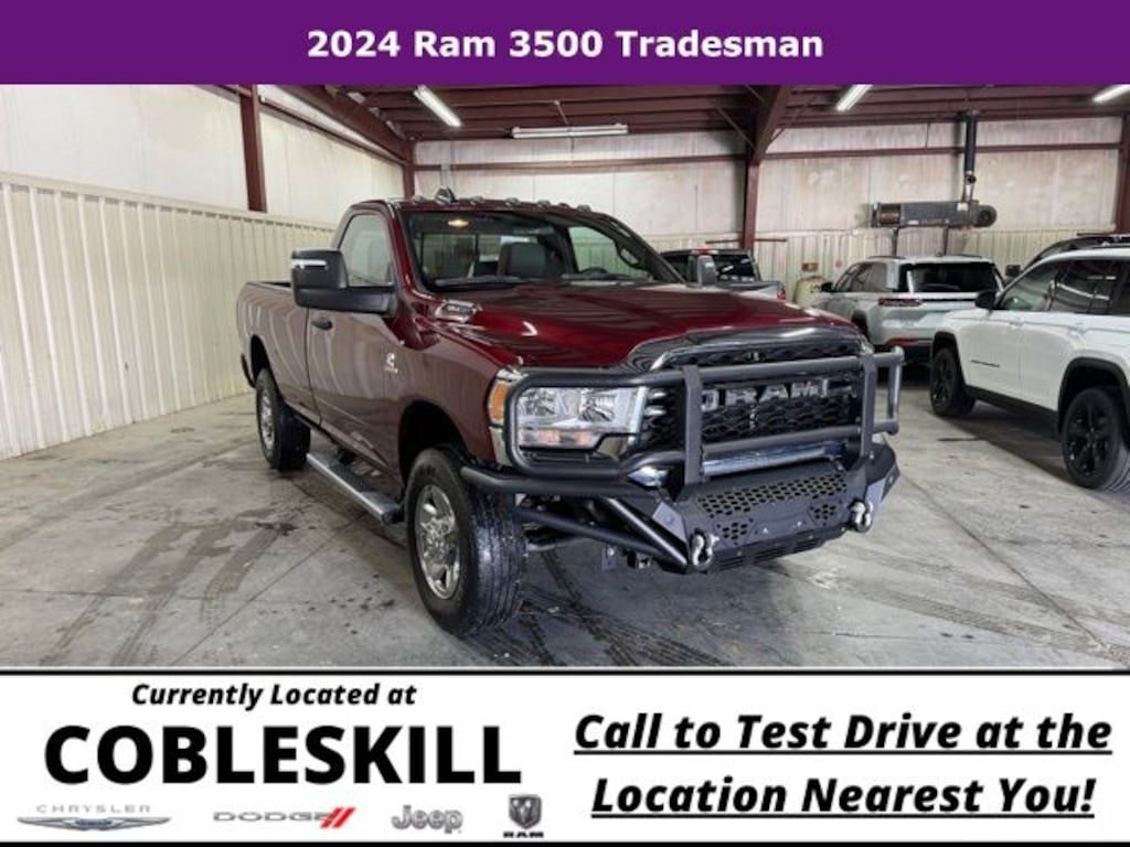 Save Time at the Dealership by Customizing your Deal Online!, 115V Auxiliary Front Power Outlet, 2-Way Front Head Restraints, 220 Amp Alternator, 3.73 Axle Ratio, 4 Speakers, 4 Way Front Headrests, 4-Wheel Disc Brakes, 40/20/40 Split Bench Seat, 400W Inverter, 5th Wheel/Gooseneck Towing Prep Group, 6 Speakers, ABS brakes, Air Conditioning, AM/FM radio, Bed Utility Group, Black Exterior Mirrors, Brake assist, Bright Front Bumper, Bright Rear Bumper, Bright Wheel Skins, Carpet Floor Covering, Center Hub, Chrome Appearance Group, Chrome Grille Surround, Chrome Headlamp Bezels, Chrome Tubular Side Steps, Clearance Lamps, Cloth 40/20/40 Bench Seat, Compass, Dash Pass Thru Wire Circuits, Delay-off headlights, Driver door bin, Dual front impact airbags, Dual front side impact airbags, Electronic Stability Control, Electronically Controlled Throttle, Emergency communication system: SiriusXM Guardian, Engine Block Heater, Exterior 115V AC Outlet, Exterior Mirrors Courtesy Lamps, Exterior Mirrors w/Heating Element, Exterior Mirrors w/Supplemental Signals, For Details Visit DriveUconnect.com, For More Info, Call 800-643-2112, Front 1-Touch Down Power Windows, Front anti-roll bar, Front Armrest w/Cupholders, Front Bumper Sight Shields, Front Center Armrest w/Storage, Front Floor Mats, Front License Plate Bracket, Front reading lights, Fully automatic headlights, Global Telematics Box Module (TBM), GPS Antenna Input, HD Vinyl 40/20/40 Split Bench Seat, Heavy Duty Snow Plow Prep Group, I/P Mounted Auxiliary Switches, Illuminated entry, Integrated Voice Command w/Bluetooth, LED Bed Lighting, Low tire pressure warning, Manual Adjust 4-Way Driver Seat, Manual Adjust 4-Way Front Passenger Seat, Manual Folding Exterior Mirrors, Manual Telescoping Mirrors, Manufacturer's Statement of Origin, Matte Black Mesh w/Chrome Grille, Mirror Running Lights, MOPAR Deployable Bed Step, MOPAR Front Rubber Floor Mats, MOPAR Spray In Bedliner, Occupant sensing airbag, Outside temperature display, Overhead airbag, Overhead Console, Overhead Cupholder Lamp, ParkView Rear Back-Up Camera, Passenger door bin, Passenger vanity mirror, Power Adjust Mirrors, Power Heat Fold Telescope Mirrors, Power steering, Power-Adjustable Convex Aux Mirrors, Protection Group, Quick Order Package 2HA Tradesman, Radio data system, Radio: Uconnect 3 w/5" Display, Rear Sliding Window, Rear step bumper, Rear Wheelhouse Liners, Remote Keyless Entry, Remote USB Port - Charge Only, SiriusXM Radio Service, SiriusXM Satellite Radio, Speed control, Speed Sensitive Power Locks, Storage Tray, Tachometer, Tilt steering wheel, Tip Start, Traction control, Tradesman Level 2 Equipment Group, Trailer Brake Control, Trailer Light Check, Upgraded Door Trim Panel, Variably intermittent wipers, Voltmeter, Wheels: 18" x 8.0" Steel, Wheels: 18" x 8.0" Steel Chrome Clad. 2024 Ram 3500 2D Standard Cab Tradesman 4WD 6-Speed Automatic Cummins 6.7L I6 Turbodiesel Delmonico Red Pearlcoat